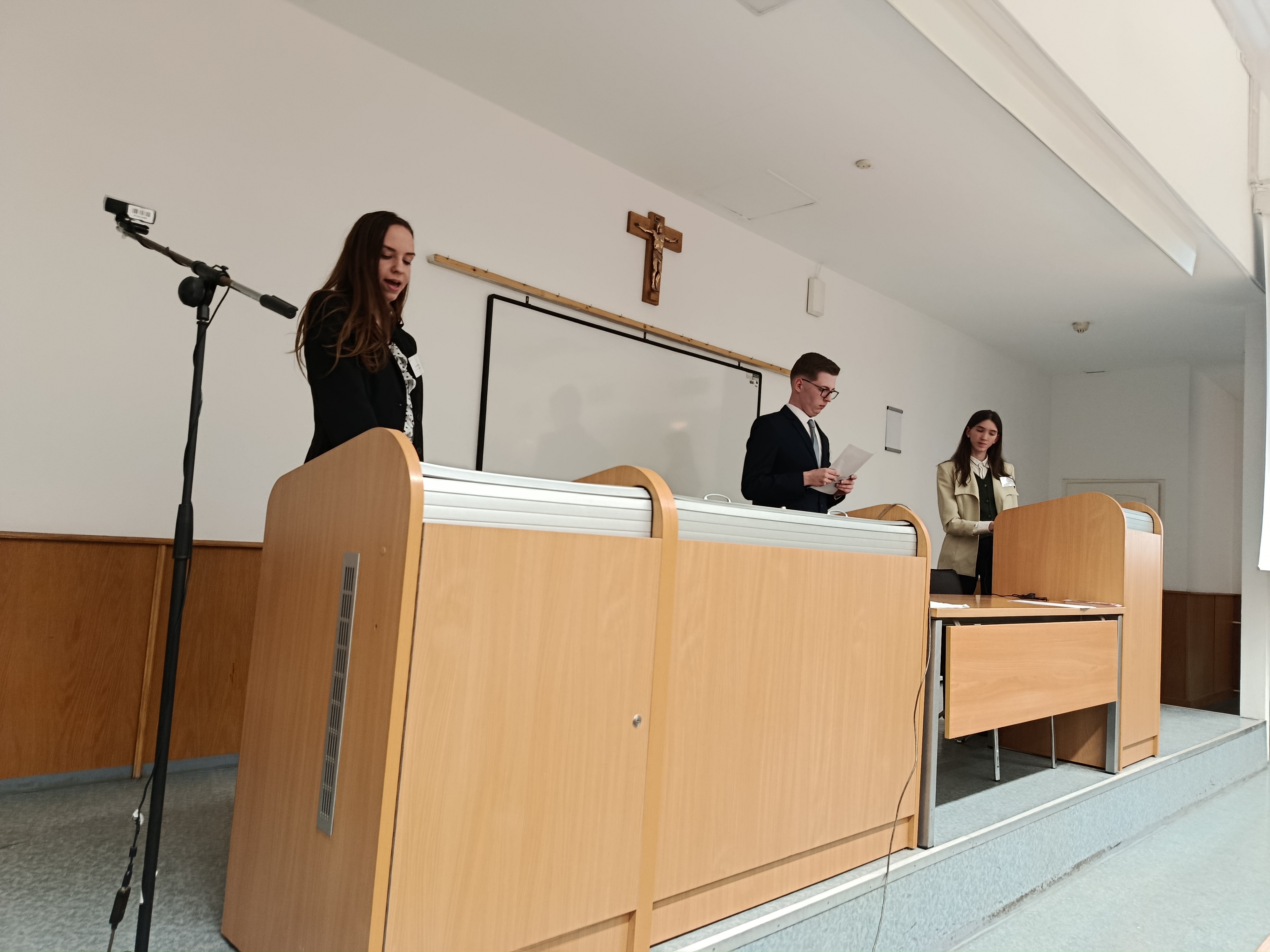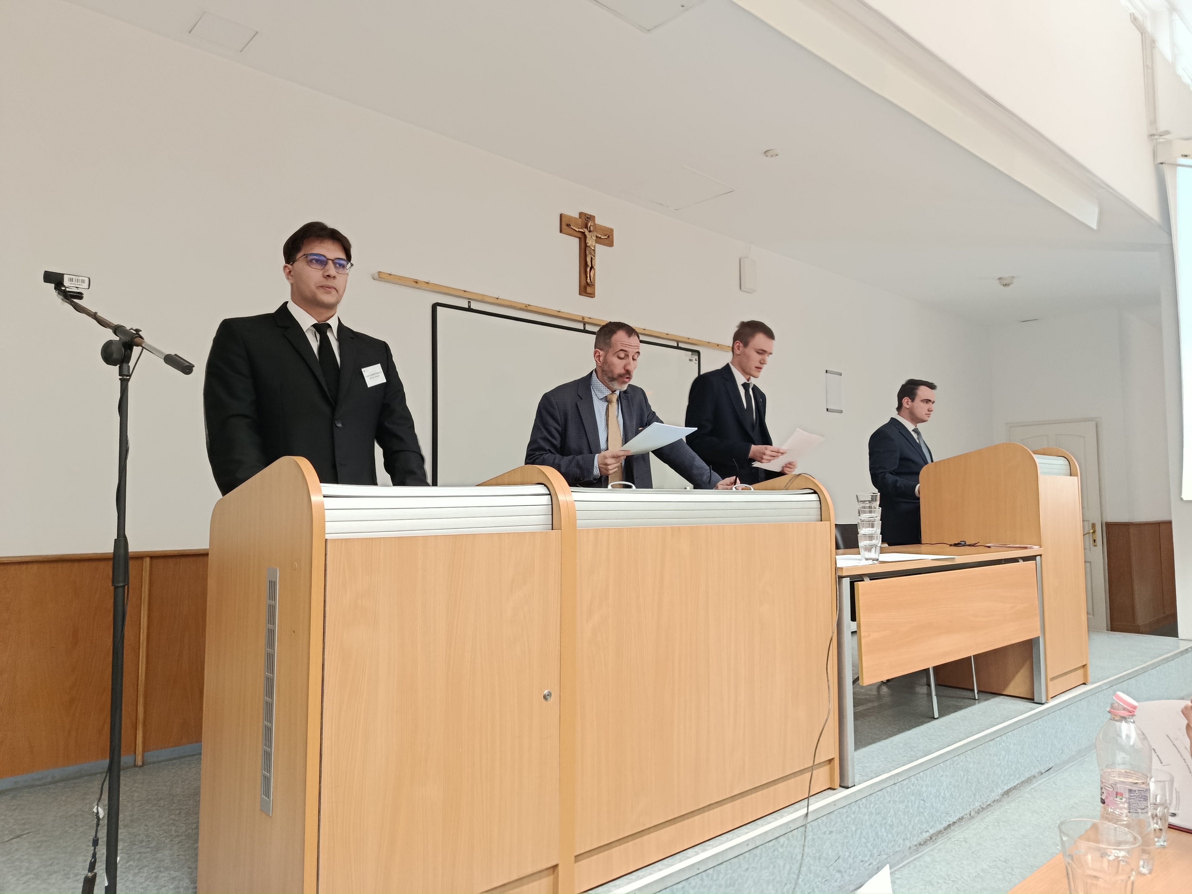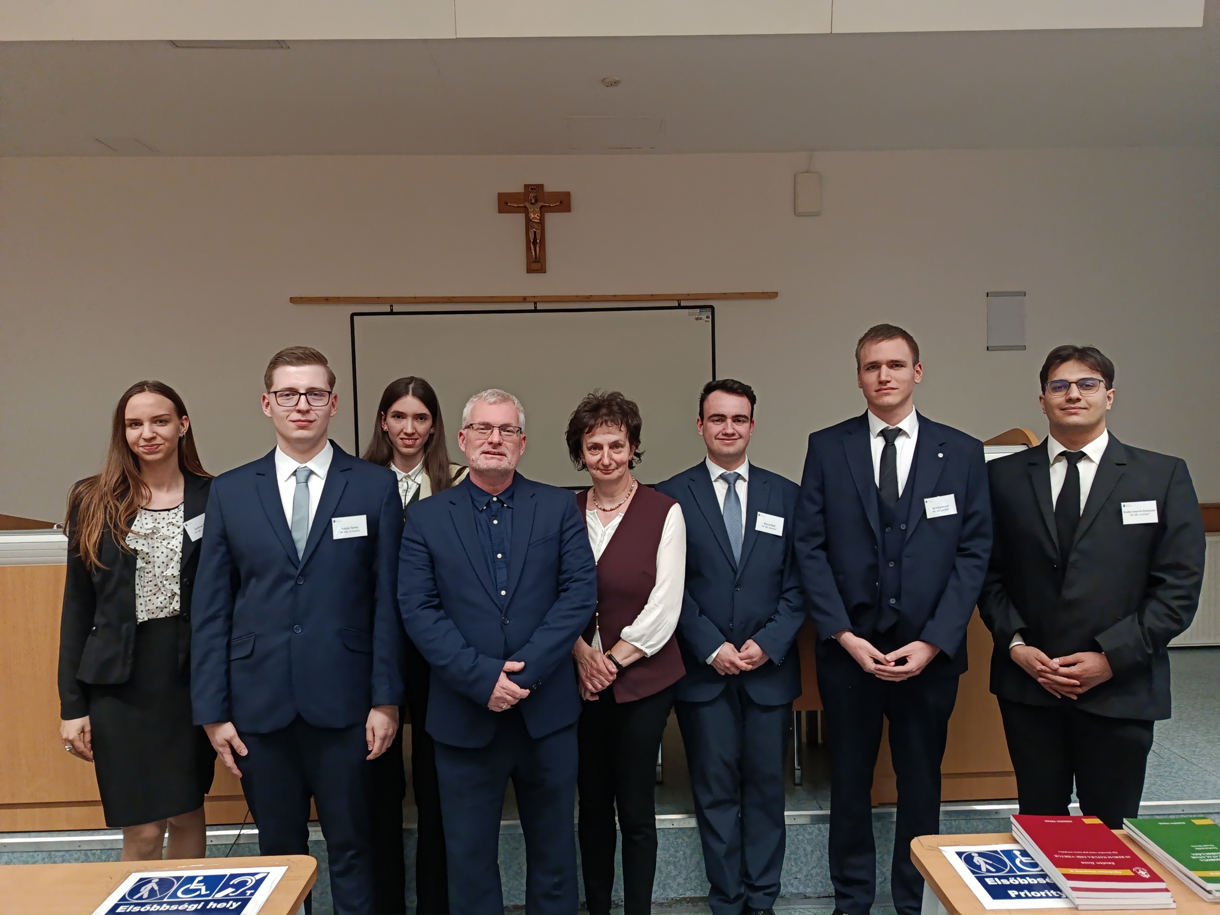 A Pázmány Péter Katolikus Egyetem Jog- és Államtudományi Kara adott otthont 2025. április 17-én a IV. Országos Római Jogi Perbeszédversenynek, melyen hét jogi kar összesen 14 csapata mérte össze tudását. Karunk egyik csapatát Kemény Kristóf, Kovács Levente Szilveszter és Kövics Máté György, a másikat Balogh Anikó, Fábián Tamás és Gottfried Sára alkotta. Minden csapatnak meg kellett oldania egy-egy római jogesetet, majd azt az eljárási szabályok betartásával elő is kellett adniuk. A miskolci elsőéves joghallgatók a versenyen szép sikert értek el: dicséretben részesültek és a zsűri a legjobb bírónak járó díjat Fábián Tamásnak ítélte oda. A jogesetek sikeres megoldásához csapataink minden tagja hozzájárult. Karunk hallgatóit Dr. Sáryné Dr. Gedeon Magdolna tanárnő és Dr. Bajánházy István tanár úr készítette fel és kísérte el a versenyre.